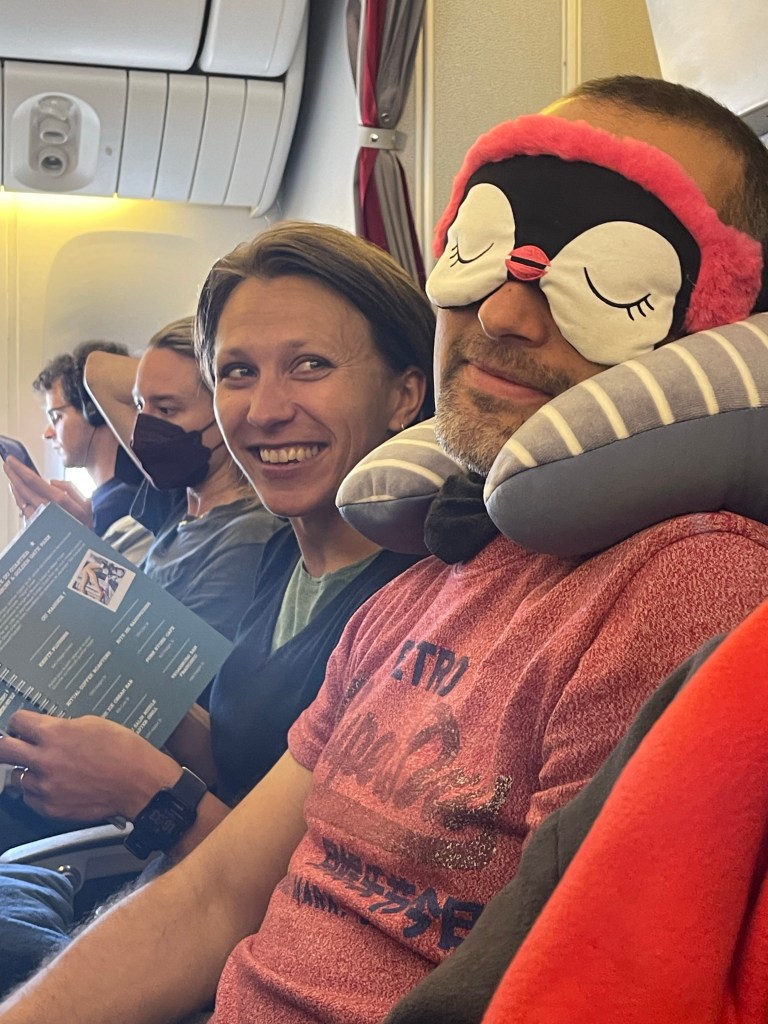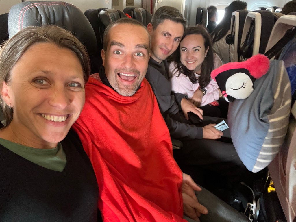 Après l’ensemble des contrôles (bagages et douane), David s’exclame : « Merde, il est où mon portable »… « Dans la voiture ». S’en est suivi une course contre la montre pour retourner au parking (à l’autre bout de l’aéroport) et revenir dans les temps pour prendre l’avion. Quelle aventure 😁.