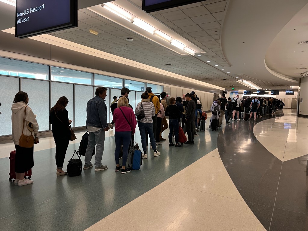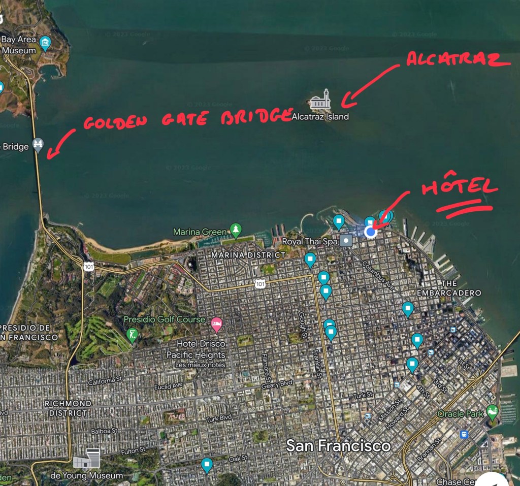 Nous sommes arrivés à San Francisco à l’heure (18:15) et avons fait la queue pour passer la douane : au moins 1h30.