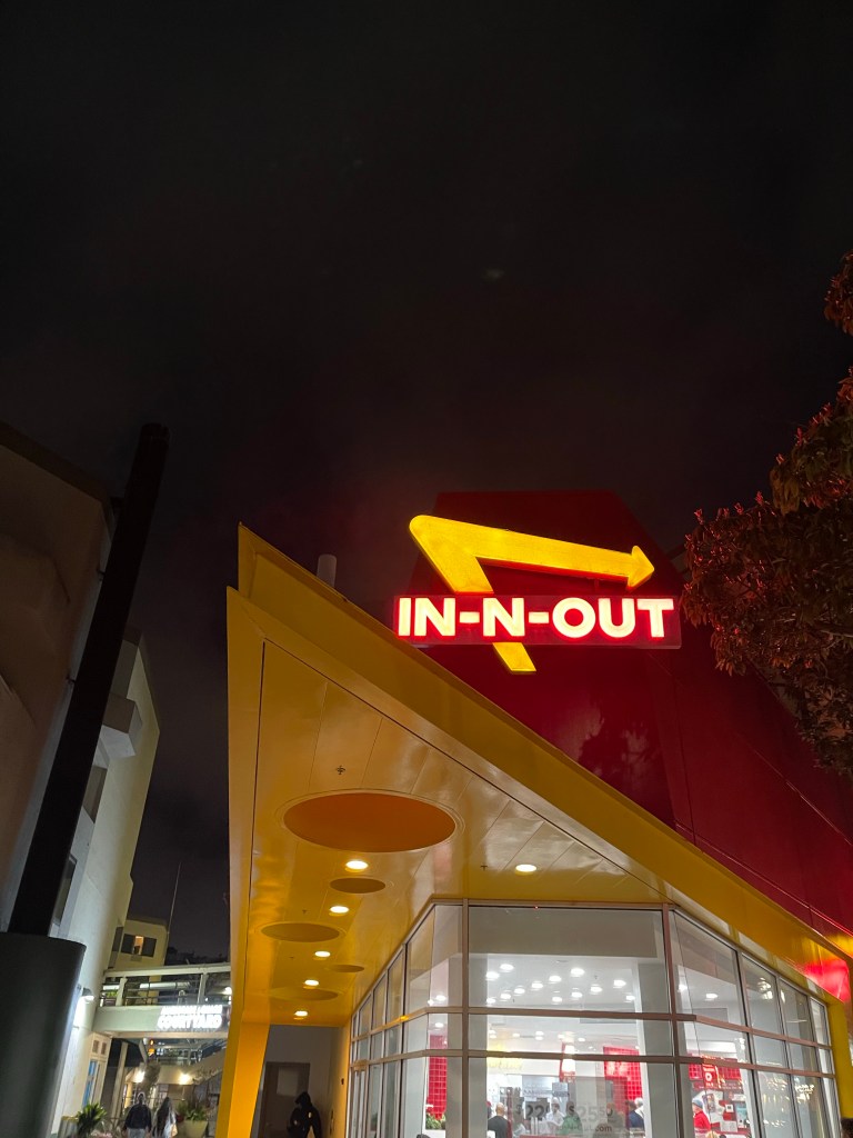 Direction le fast-food IN-N-OUT où les hamburger et les frites sont faites maison.