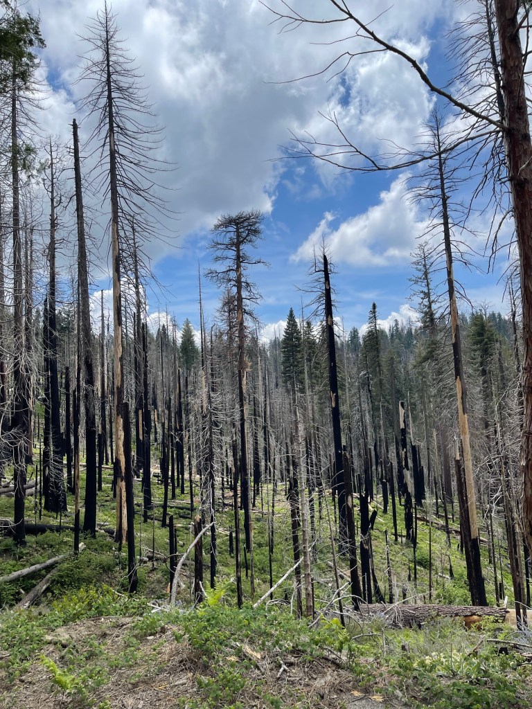 Nous prenons ensuite la direction de mariposa grove pour voir les séquoias. Sur le trajet on voit les ravages de l incendie de juillet 2022. C’est assez impressionnant. Nous arrivons sur le parking, on en profite pour manger les restes de pizza et se refaire un p’tit sandwich. Après va cette rando faut reprendre des forces. Car nous allons encore un peu marcher pour aller voir ces fameux séquoias 😍.