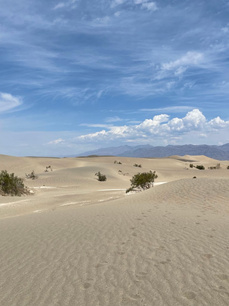 Nous arrivons par le point de vue des Dunes de sable de Mesquite Flat.