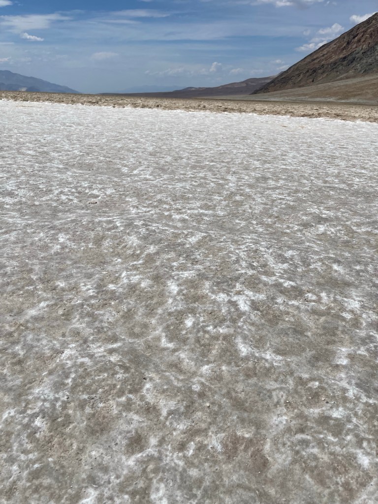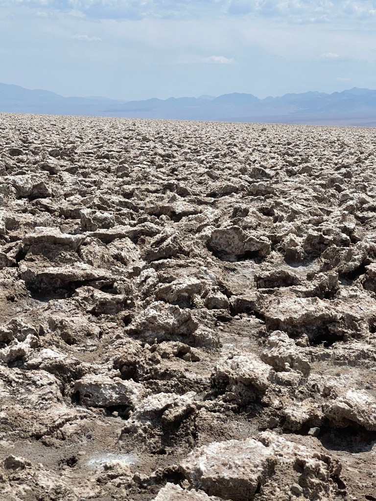 Nous avons pris une ptite pause café et glace au Ranch at death valley. Nous remontons en voiture et direction Devil’s Golf course, ou le sel à littéralement été sculpté par le vent et l’eau. Pour y arriver il faut prendre une piste pour y arriver.