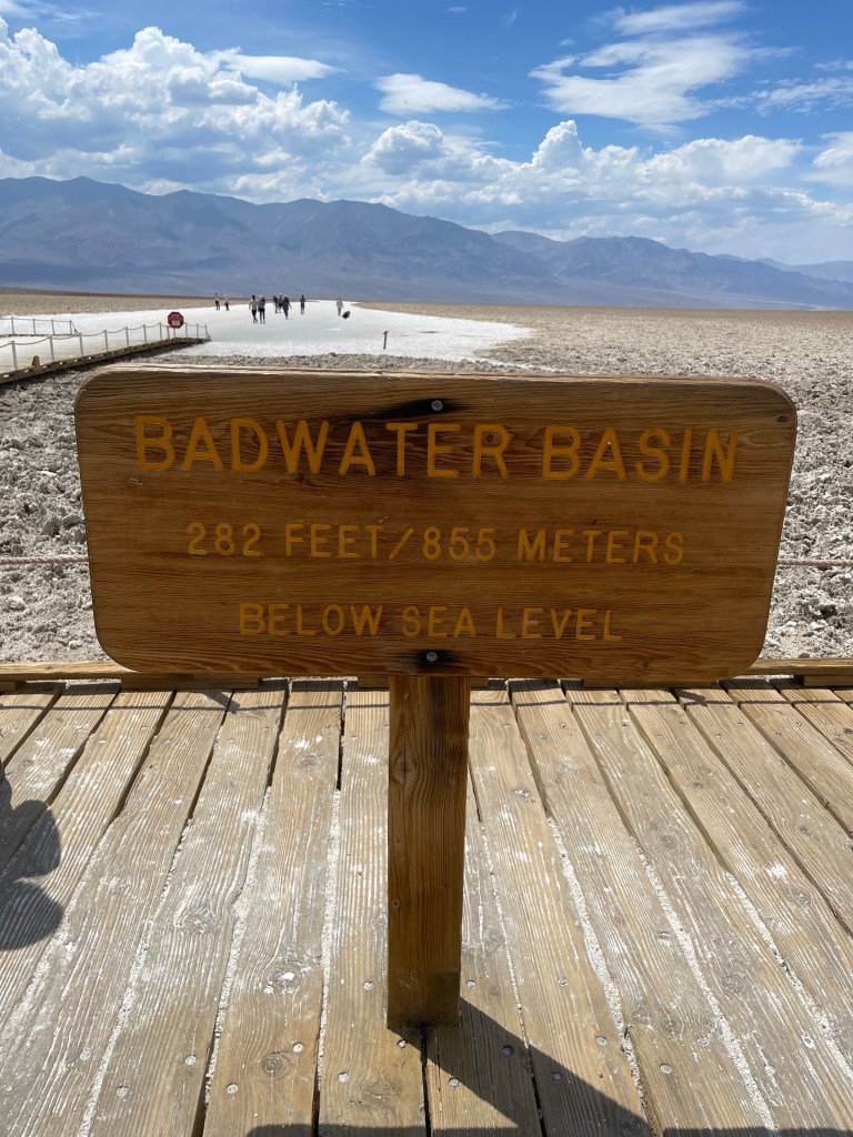 Ensuite, direction, Badwater Basin, à -86 mètres sous le niveau de la mer. C’est l’un des points les plus bas et les plus chauds de la planète. Et en effet, il est primordial d avoir beaucoup d’eau. Car même si on ne sort pas longtemps du véhicule la chaleur fait que nous perdons beaucoup d’eau.