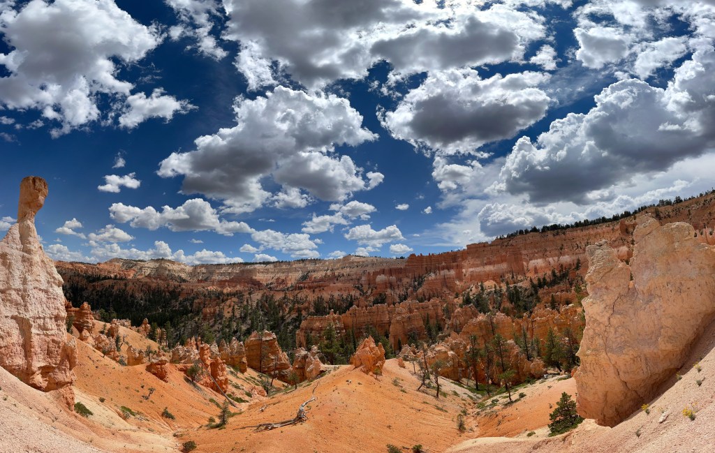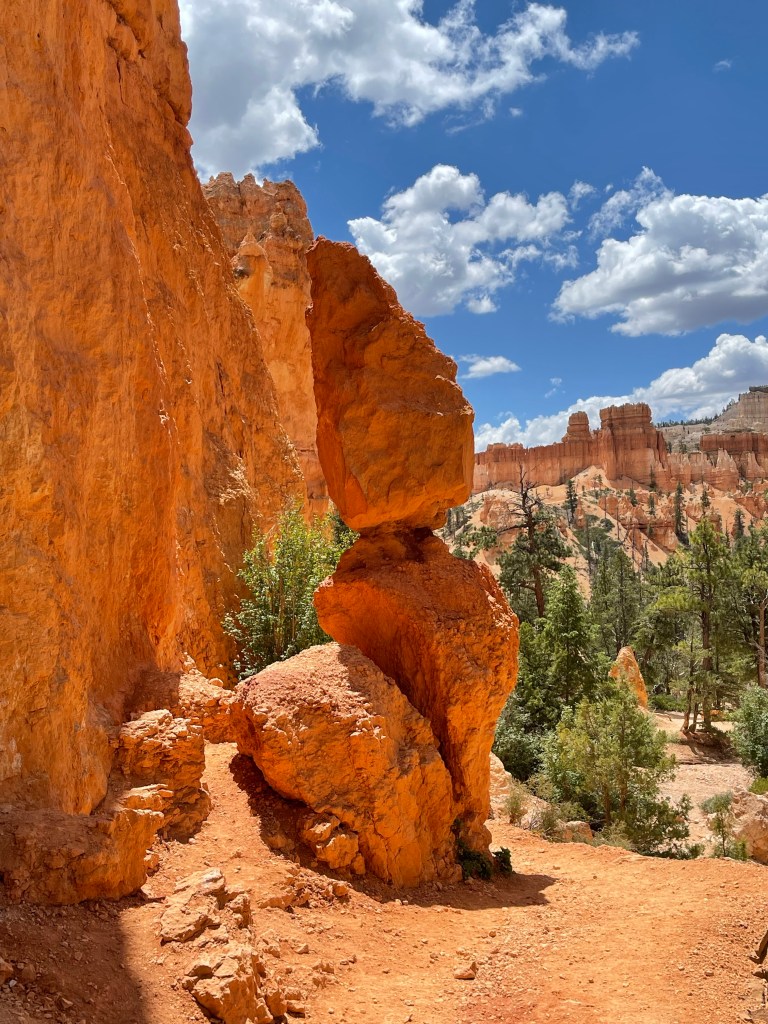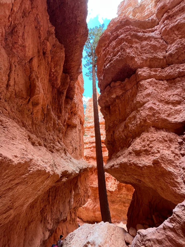Nous sommes arrivés vers 11h sur le visitor center. Nous avons fait le point avec un ranger super sympa qui parlait un peu le français. Nous décidons de partir sur un combiné de trois sentiers : Queen’s Garden, Peekaboo Loop et Navajo pour une rando d’environ de 10,2 km et 600 m de dénivelé.