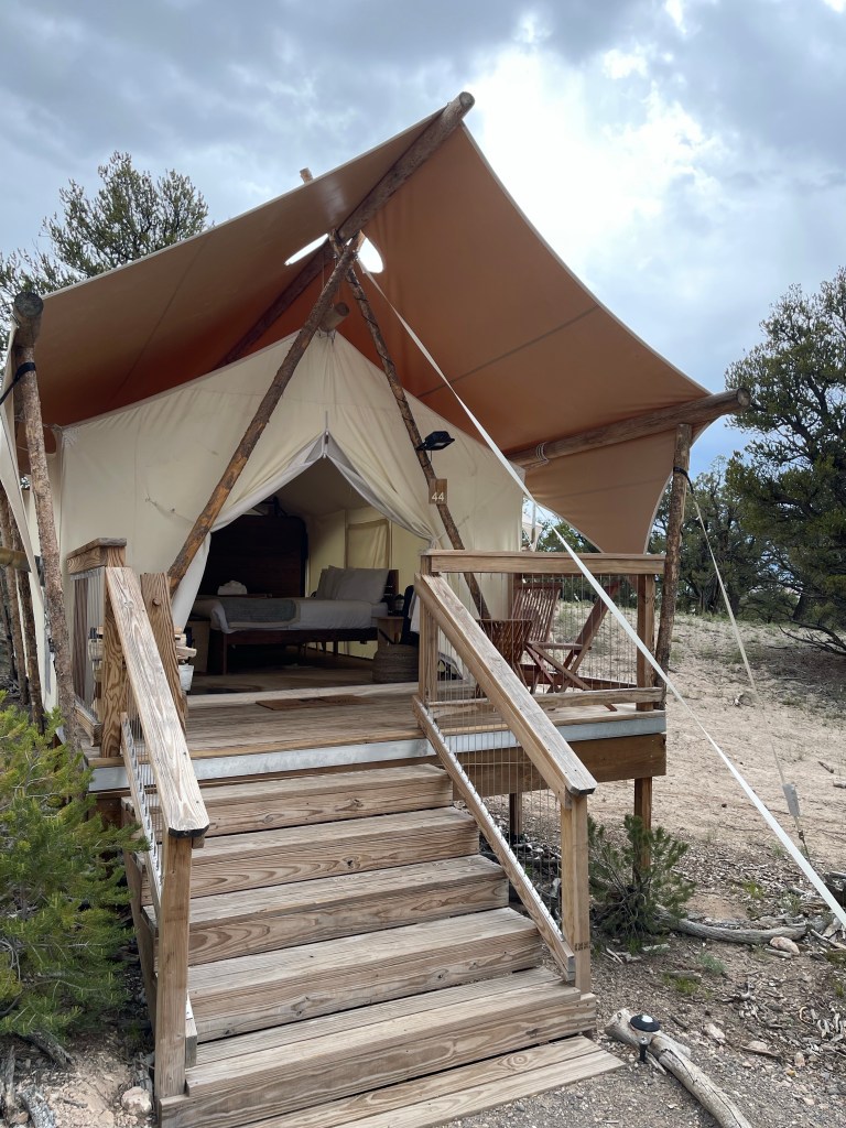 Après cette magnifique rando nous partons rejoindre notre logement pour la nuit. Et ce soir nous dormirons dans une tente au Under Canvas Bryce Canyon. Chaque tente est harmonieuse, lumineuse, le luxe en pleine nature. Franchement top.